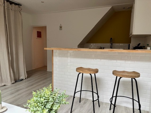 Dès l'entrée, vous serez séduit par la luminosité des espaces. Le salon, bien agencé, communique harmonieusement avec une cuisine américaine moderne, créant un espace de vie convivial. La maison dispose d'une chambre spacieuse, idéale pour un couple ou une personne seule. Et un bureau ou petite chambre situé au second étage .